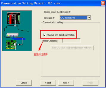 1、當(dāng)PLC和PC直接連接的話,選擇”以太網(wǎng)端口直連”