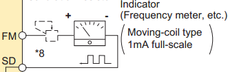 2.不帶-CHT的變頻器與之相應的監(jiān)視輸出端子FM是脈沖輸出(圖二)