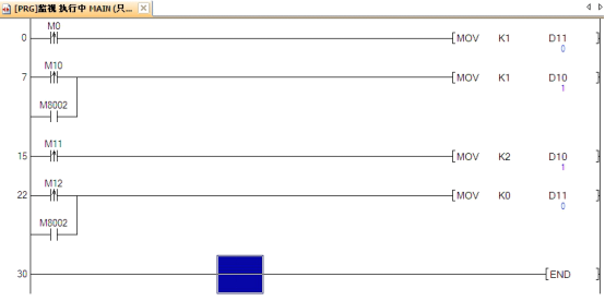 5、我們用 PLC 編程軟件寫一個程序,把上面創建畫面所用到的幾個軟元件和 PLC 的程序相關聯起來。