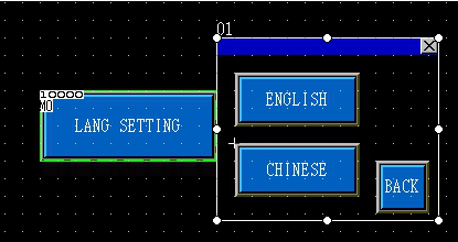 保存一下畫面,再次啟動觸摸屏仿真。這時當按下語言設定開關時,對話框出現在了指定位置。