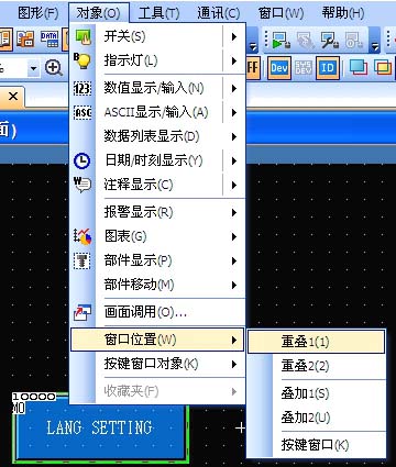 結束觸摸屏仿真,在菜單欄→對象→窗口位置點擊重疊 1。