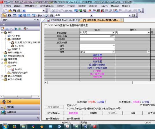 三菱PLC編程軟件GX Works2中新建工程,選擇Q02UCPU,在PLC參數中的網絡參數的以太網等等,選擇模塊1,具體設置如下圖: