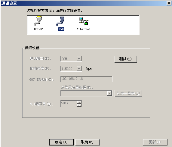 2、筆記本按照以下設(shè)置通過(guò)三菱觸摸屏的USB口與三菱觸摸屏建立通訊連接。