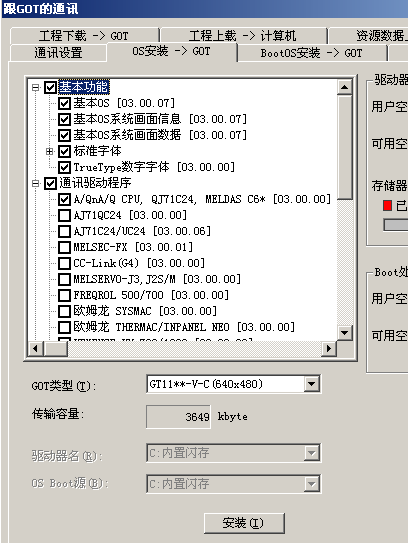 4、再安裝OS,注意GOT類型不要選錯(cuò),應(yīng)為GT11**V-C(640x480)