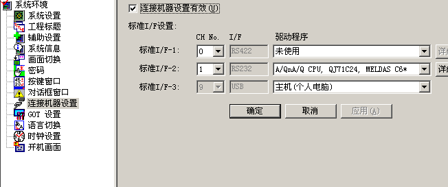 1、使用三菱PLC電纜QC30R2通過(guò)RS232方式與PLC通訊,PLC端不用做任何設(shè)置。而三菱觸摸屏GT11系列如下圖所示: