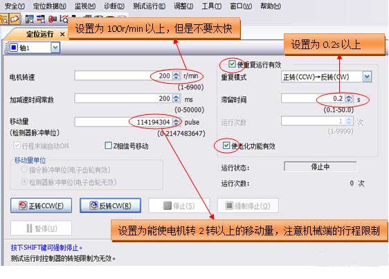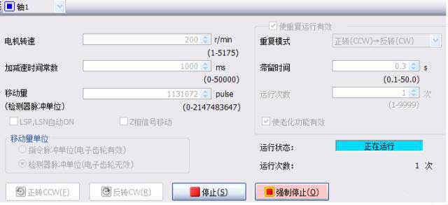 設(shè)置完成后,點擊“正轉(zhuǎn)”,使電機運行。