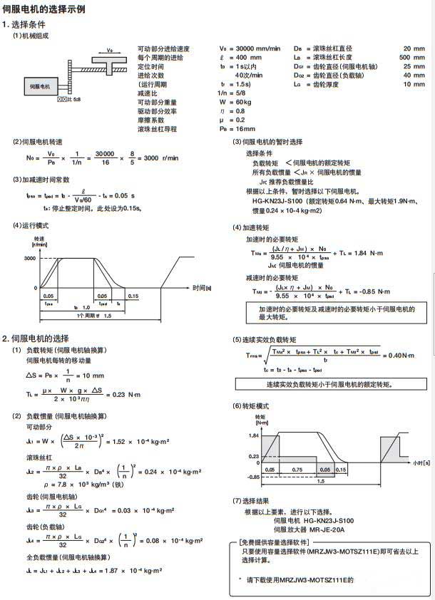 比如下圖是三菱伺服電機選擇示例,滿滿的一頁都是計算...