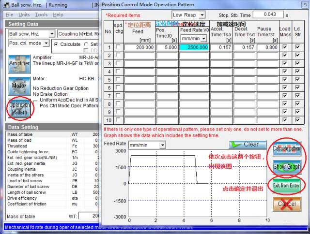 運行曲線描述了三菱伺服電機在執行定位指令時,需要以多大的加減速時間,多大的速度、走多少的距離。