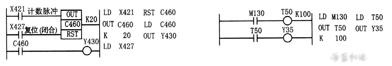 利用計數(shù)器進行控制的梯形圖及指令如圖示。在復位端的觸頭 X427 斷開
