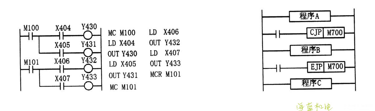 主控指令 MC 用于樹狀分支電路的分支起點,相當于通用計算機的調(diào)用子程序指